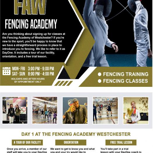 The Fencing Academy of Westchester is a locally owned, state-of-the-art fencing school dedicated to the Olympic sport of fencing. We welcome students of all ages to learn this incredible sport and develop self-confidence, physical ability, discipline, sportsmanship, and lifelong friendships along the way.